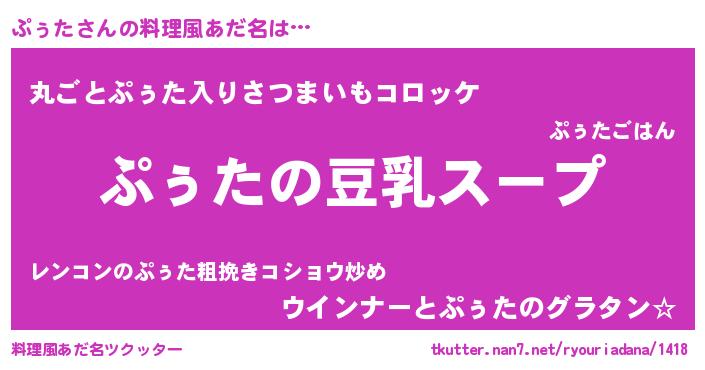 | 胡散臭い通販商品みたいなあだ名 | 『信頼と実績のサプリメント…その名も「ぷぅた」』 |