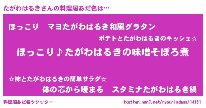 | 胡散臭い通販商品みたいなあだ名 | 『必ず成功するブレスレット…その名も「たがわはるき」』 |