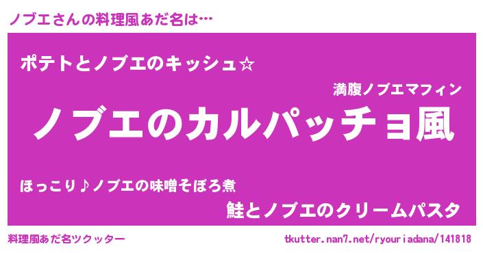 | 男性向けラノベタイトル風あだ名 | 『魔弾の王とノブエ』『ノブエの憂鬱』 |