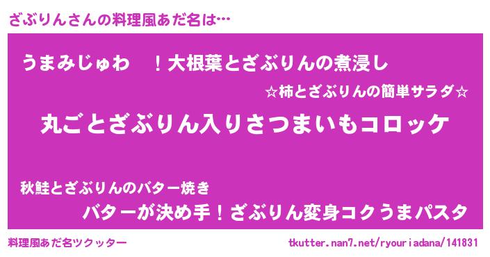 | 意味不明あだ名 | 『住所不定無職ざぶりん(91歳)』 |