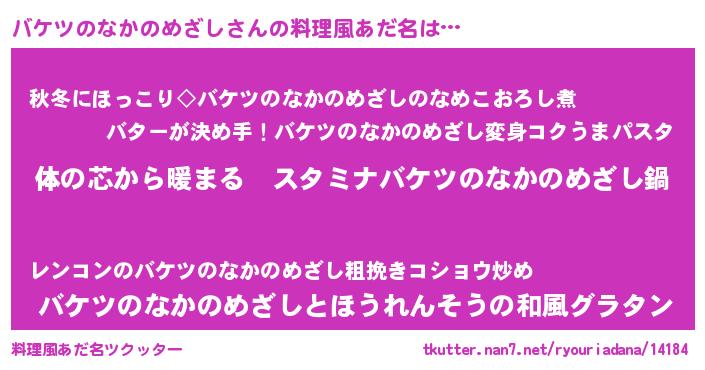 | 意味不明あだ名 | 『バケツのなかのめざしフォーエバー』 |
