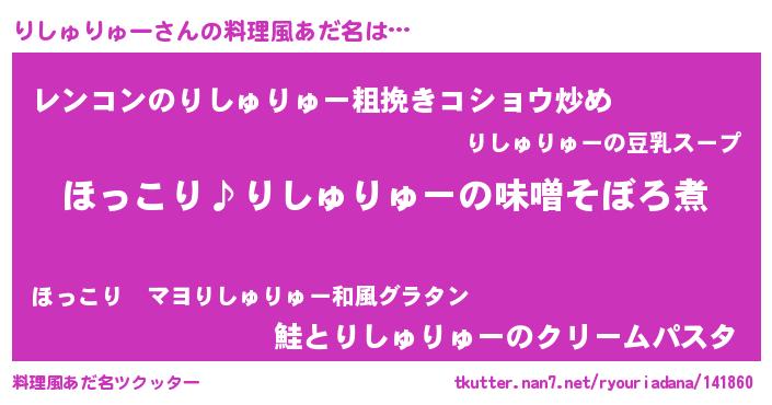 | 女子向けラノベタイトル風あだ名 | 『(仮)りしゅりゅーのやんごとなき事情』 |