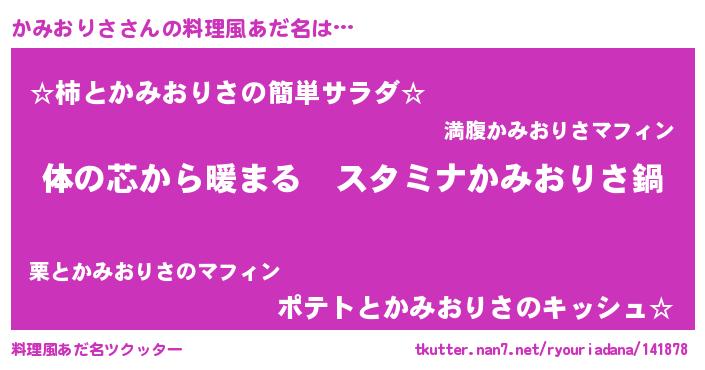 | 男性向けラノベタイトル風あだ名 | 『やはりかみおりさの青春ラブコメはまちがっている 』 |