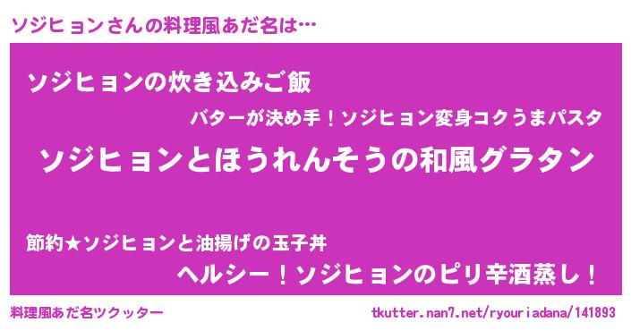 | 胡散臭い通販商品みたいなあだ名 | 『テレビで話題の高麗人参…その名も「ソジヒョン」』 |