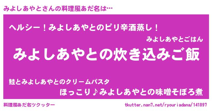 | 意味不明あだ名 | 『自称みよしあやと』 |