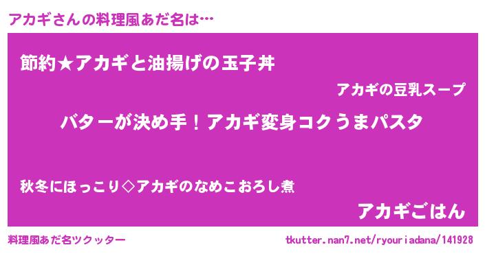 | 女子向けラノベタイトル風あだ名 | 『アカギ恋絵巻』『アカギ姫と円卓の騎士』 |