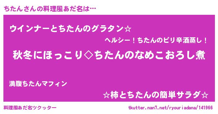 | ヒーロー風カッコイイあだ名 | 『ウルトラちたんマン』『ネオチタン』 |