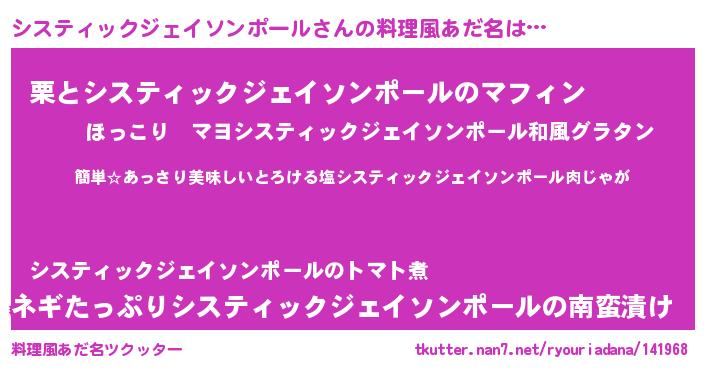 | ヘコむあだ名 | 『システィックジェイソンポール(小並感)』 |