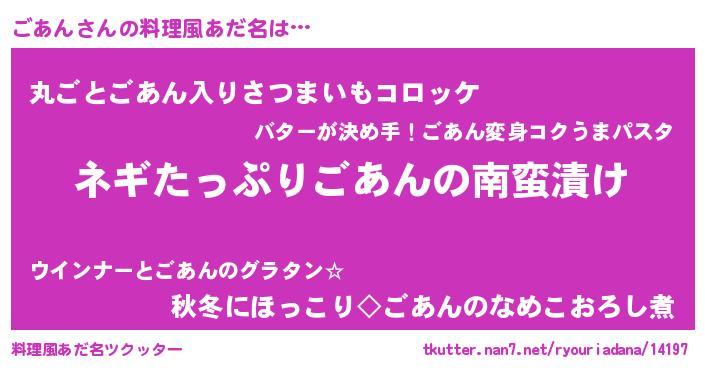 | 意味不明あだ名 | 『ペロリンごあん』『ごあんフォーエバー』 |