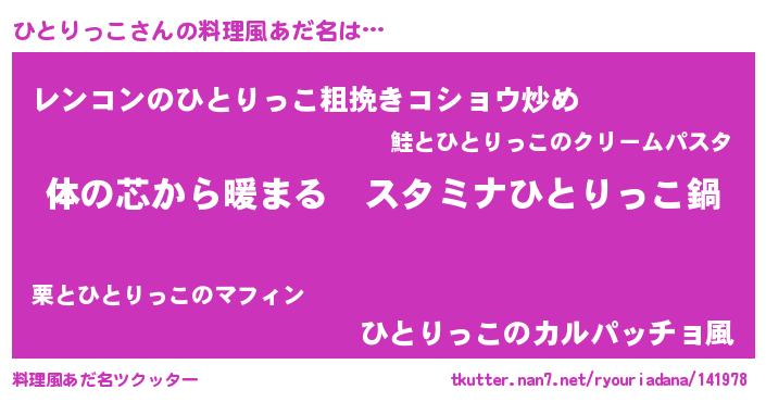 | 意味不明あだ名 | 『ひとりっこフォーエバー』 |