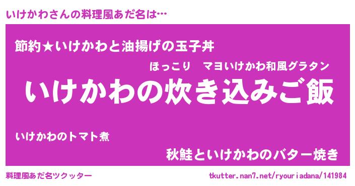 | ヘコむあだ名 | 『いけにー』『いけかわ(笑)』 |