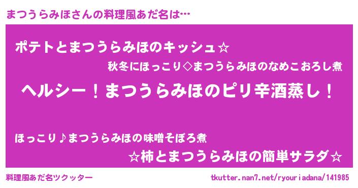 | 男性向けラノベタイトル風あだ名 | 『Re:まつうらみほから始める異世界生活』 |