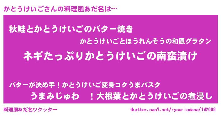| 胡散臭い通販商品みたいなあだ名 | 『億万長者になれる水晶球…その名も「かとうけいご」』 |