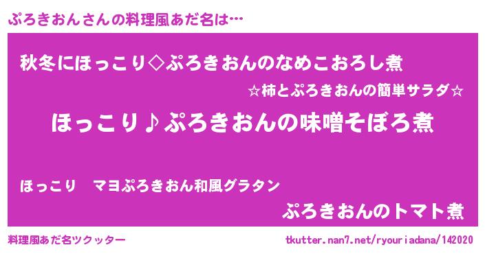 | 女子向けラノベタイトル風あだ名 | 『(仮)ぷろきおんのやんごとなき事情』 |