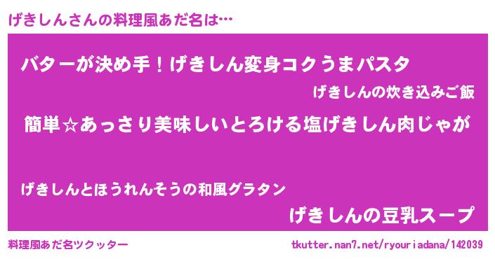 | 意味不明あだ名 | 『永久保存げきしん』『ニラ科げきしん属』 |