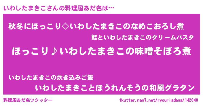 | 女子向けラノベタイトル風あだ名 | 『(仮)いわしたまきこのやんごとなき事情』 |
