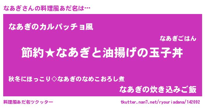 | 男性向けラノベタイトル風あだ名 | 『なあぎの憂鬱』『魔弾の王となあぎ』 |