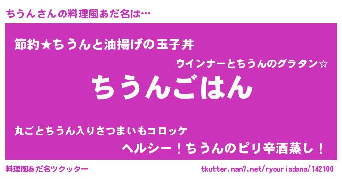 | 意味不明あだ名 | 『めかぶ科ちうん属』『ペロリンちうん』 |