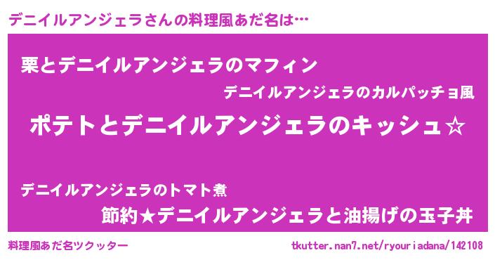 | 女子向けラノベタイトル風あだ名 | 『デニイルアンジェラの卵を拾いまして』 |