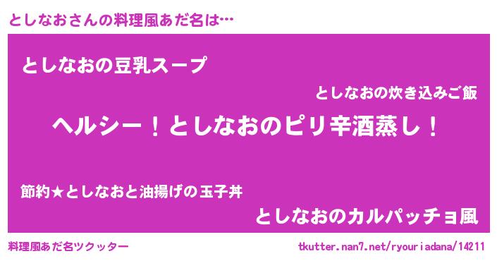 | 意味不明あだ名 | 『自称としなお』『ペロリンとしなお』 |