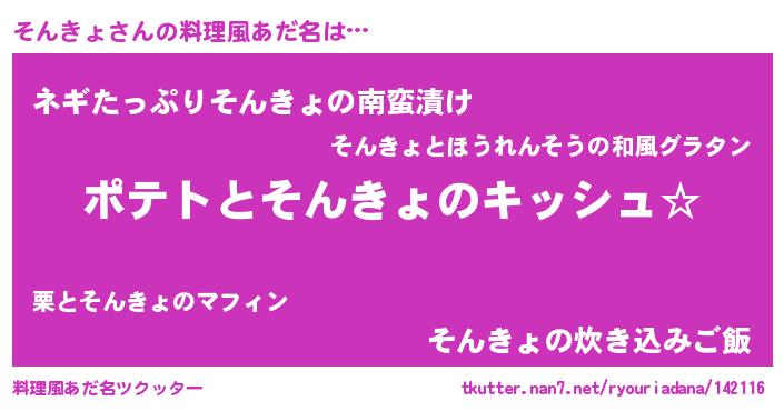 | 女子向けラノベタイトル風あだ名 | 『そんきょの卵を拾いまして』 |