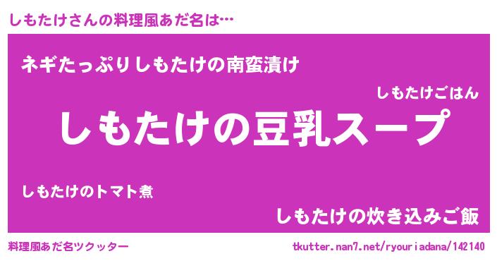| ヘコむあだ名 | 『しもお』『しもにゅー』『なまこ酢』 |