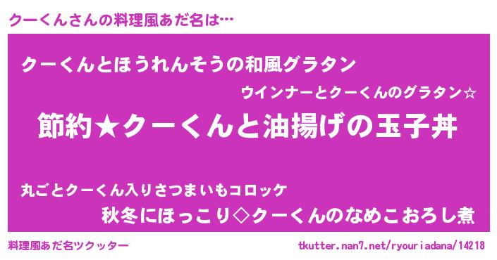 | ヘコむあだ名 | 『クーにー』『なまこ酢』『クーを』 |