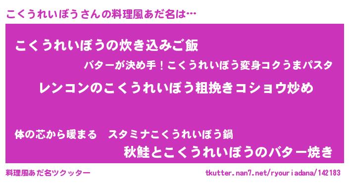 | 胡散臭い通販商品みたいなあだ名 | 『テレビで話題の高麗人参…その名も「こくうれいぼう」』 |