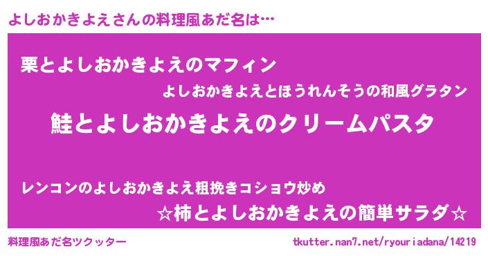 | ヒーロー風カッコイイあだ名 | 『慈愛の使者よしおかきよえ』 |