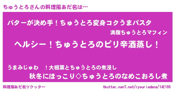 | 意味不明あだ名 | 『自称ちゅうとろ』『永久保存ちゅうとろ』 |