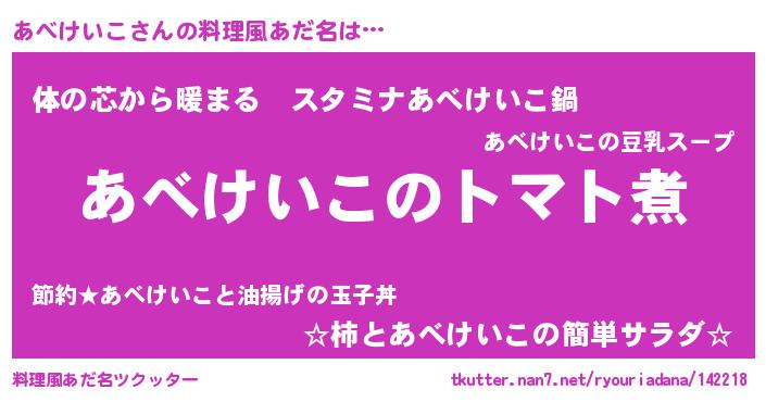 | 意味不明あだ名 | 『眠気覚ましガムあべけいこ味』 |