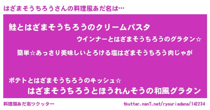 | 胡散臭い通販商品みたいなあだ名 | 『前代未聞の水素水…その名も「はざまそうちろう」』 |