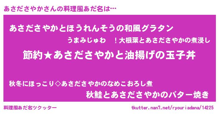 | ヘコむあだ名 | 『あさにゅー』『あさださやか(笑)』 |