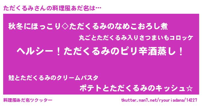 | 意味不明あだ名 | 『自称ただくるみ』『ペロリンただくるみ』 |