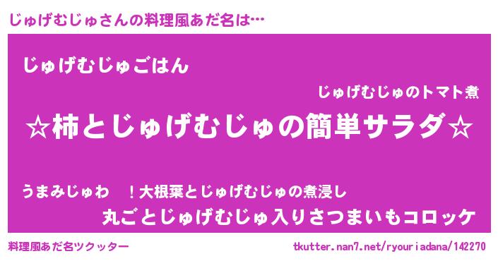 | 男性向けラノベタイトル風あだ名 | 『緋弾のジュゲムジュ』 |