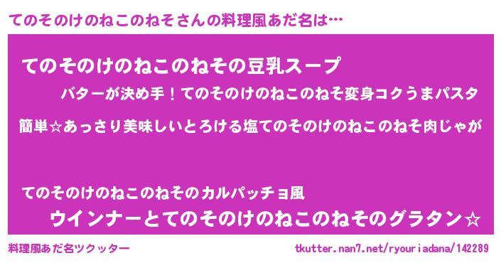 | 意味不明あだ名 | 『永久保存てのそのけのねこのねそ』 |