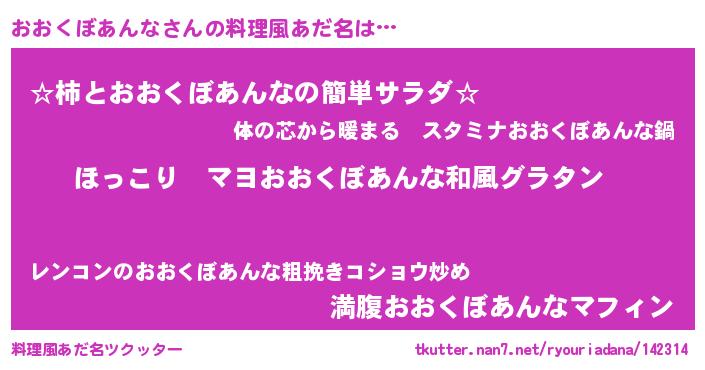 | 男性向けラノベタイトル風あだ名 | 『この素晴らしい世界におおくぼあんなを!』 |