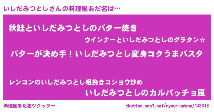 | ヘコむあだ名 | 『いしだみつとし(爆)』『なまこ酢』 |