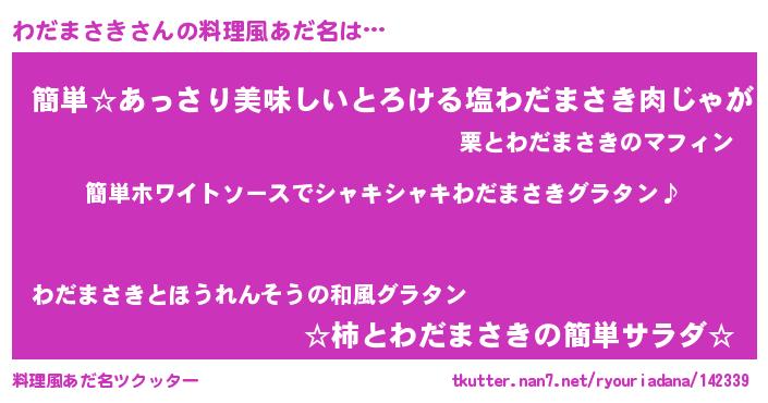 | 男性向けラノベタイトル風あだ名 | 『わだまさきの嫁は女の子じゃないと思った?』 |