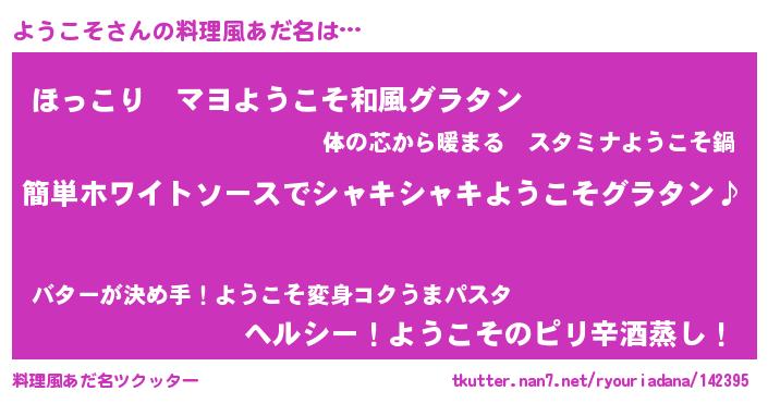 | 女子向けラノベタイトル風あだ名 | 『ようこそ様がみてる』『闇のようこそ』 |