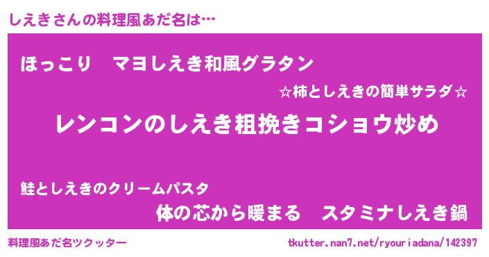 | 意味不明あだ名 | 『自称しえき』『住所不定無職しえき(89歳)』 |