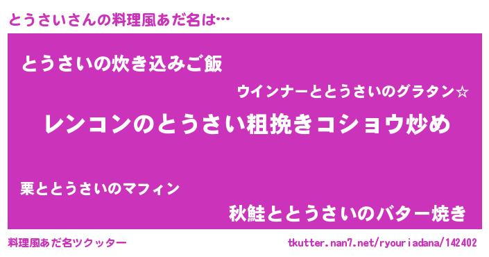 | 胡散臭い通販商品みたいなあだ名 | 『テレビで話題の高麗人参…その名も「とうさい」』 |