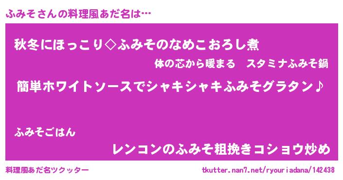 | ヘコむあだ名 | 『ふみを』『酢こんぶ』『ふみふぇ~』 |