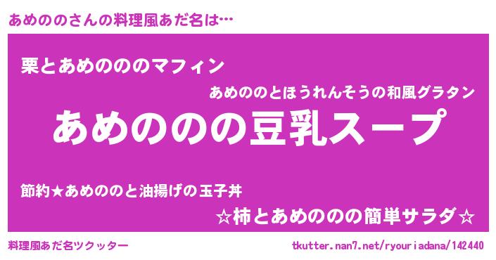 | 意味不明あだ名 | 『とにかく怪しいあめのの』 |
