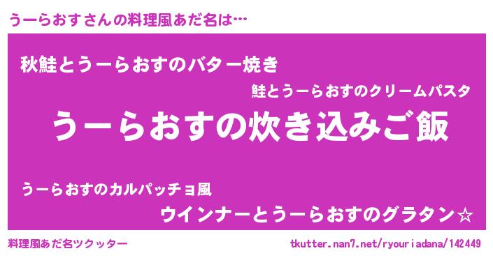| ヘコむあだ名 | 『うーらおす(苦笑)』『豆乳』 |