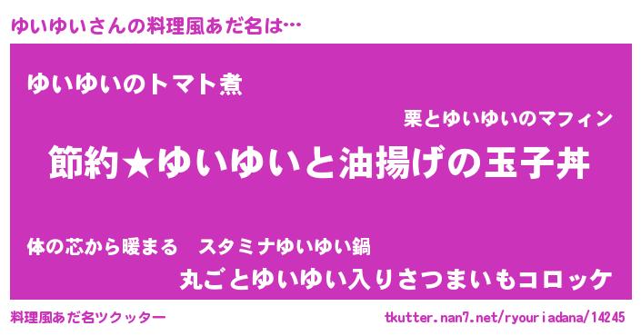 | 欧米人風あだ名 | 『マイケルゆいゆい』『ダニエルゆいゆい』 |