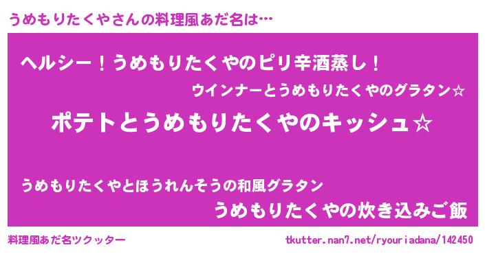 | ポケモン風あだ名 | 『ヒウメモリタクヤ』『ウメセウス』 |