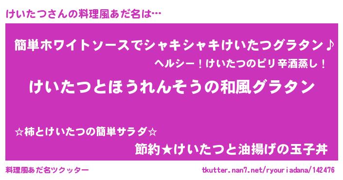 | ポケモン風あだ名 | 『ケイキング』『ヒケイタツ』 |
