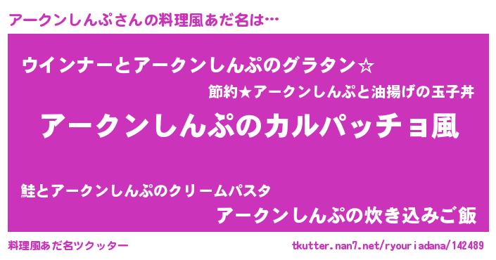| 意味不明あだ名 | 『住所不定無職アークンしんぷ(9歳)』 |