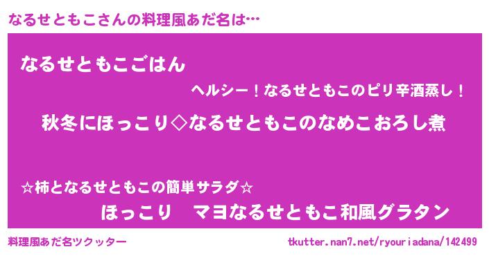 | ヘコむあだ名 | 『なるせともこ(震え声)』『なるっぺ』 |